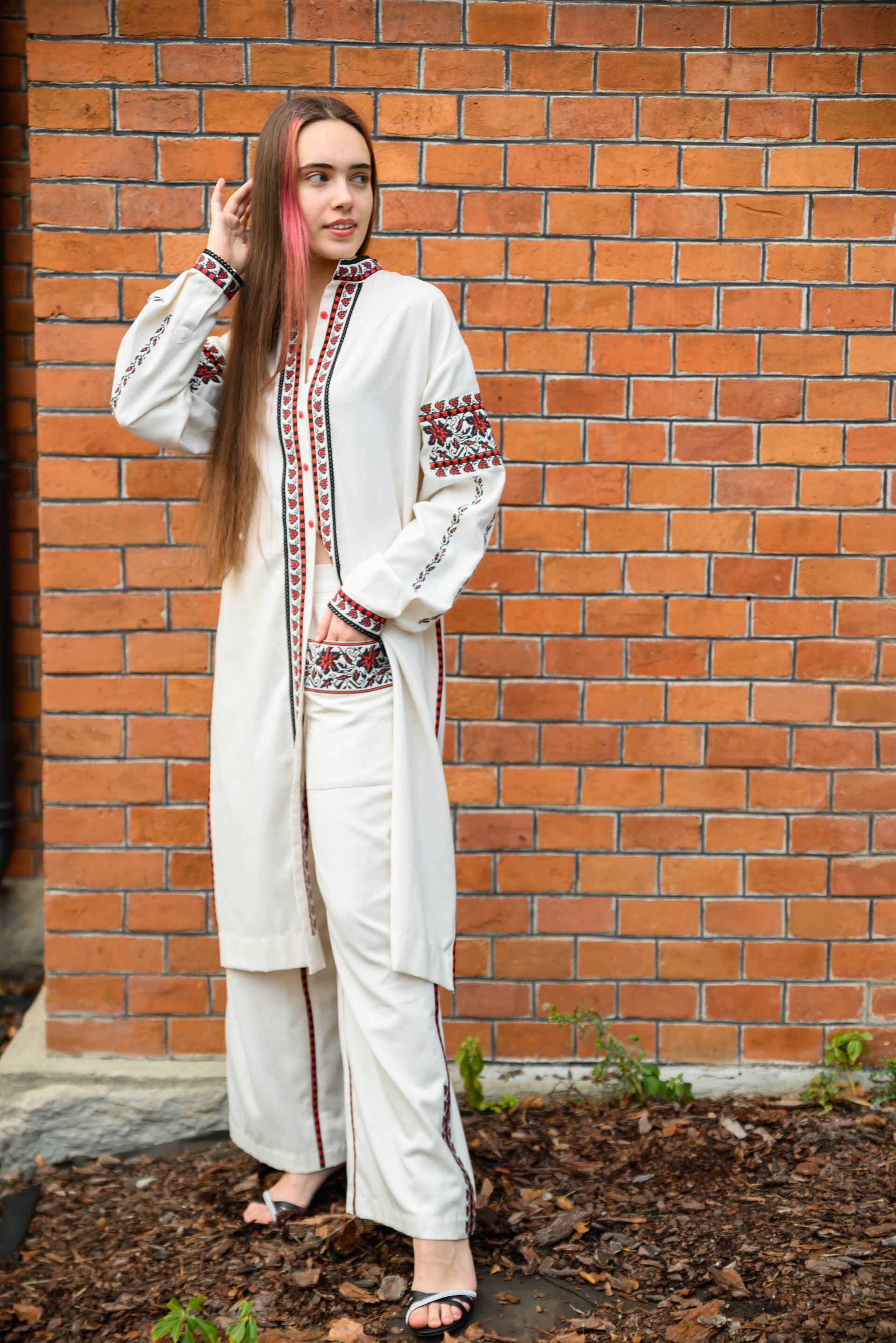 Embroidered pants and tunic with Ukrainian Drohobych ornament.