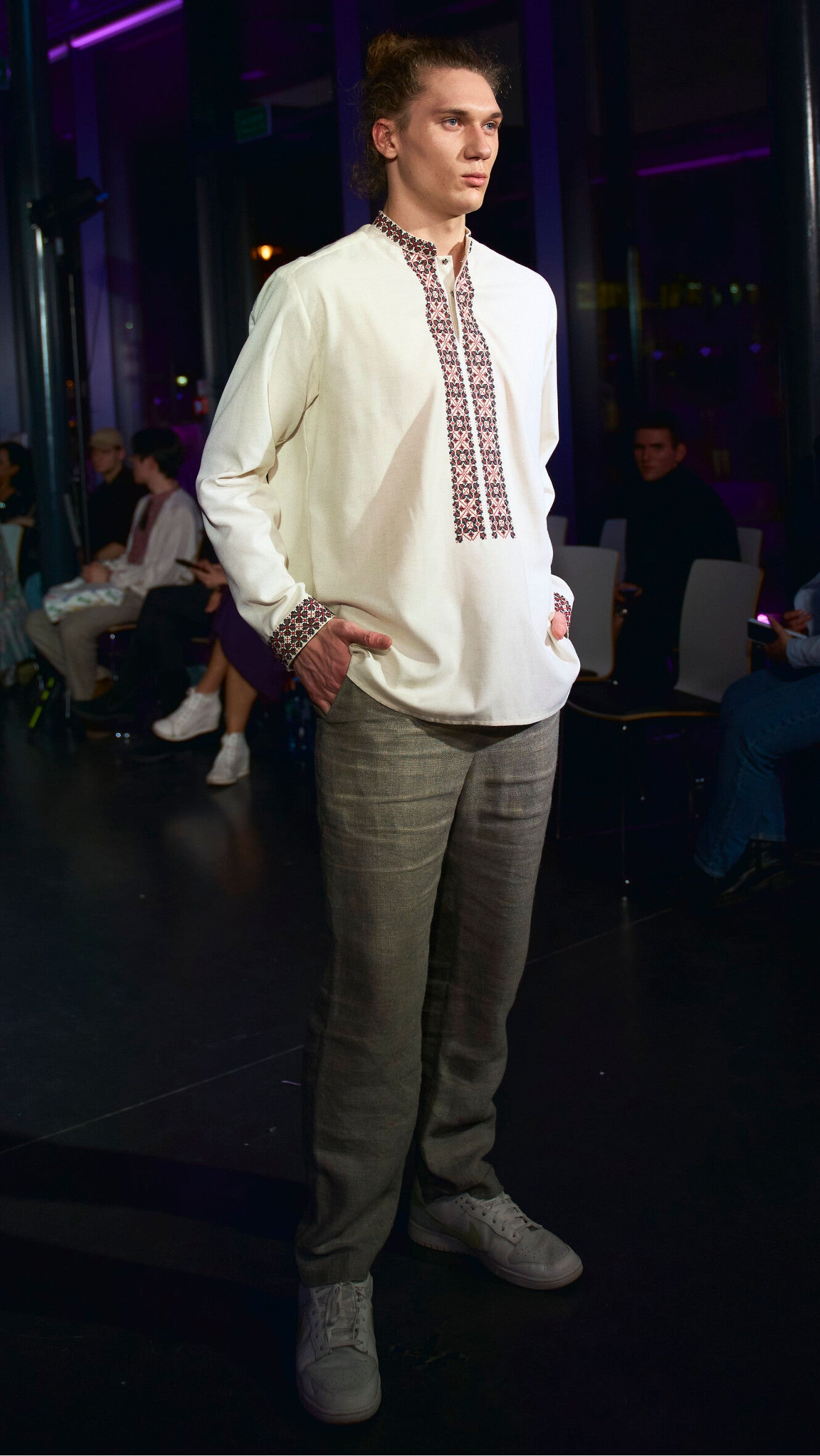Embroidered linen blend men shirt. Ukrainian Drohobych ornament.